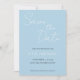 Enkla bröllopsinbjudningar med svart, stiliserad skrift på en trendig, ljusblå bakgrund. Redigera och ersätt namn, datum och plats med dina egna. Välj storlek på inbjudan och pappersstil.