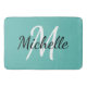 Badmattan med ljusblå bakgrund och vit anpassningsbar monogram första gången och första namn.