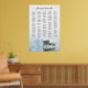 I detta vackra bröllop-sittdiagram finns ett foto av ett glansigt blått eller dammigt blått färgad ro som ljuger på sidan och som reflekterar i ett bassäng av vatten med vinkara och krusande föremål. Rubriken lyder "hitta bord" i elegantens äldre skriptkalligrafi. Det finns utrymme för upp till 250 namn med namn av paret och bröllop nedan. Underbart sätt att hjälpa dina gäster att hitta bord medan du skapar din mottagning vackrare.