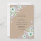 En varm, tanfärgad bakgrund ger en jordnära grund för känsliga vattenfärgblommor. Luftiga kronblad i mintgrönt och mjuk lavendel paras med eterisk lila lövverk. Denna måleriska design skapar en lugn atmosfär som passar för en rustik vår- eller sommarhändelse. De organiska blomsterdelarna frammanar den naturliga skönheten hos en blommande äng.