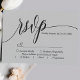 Ljust grått enkelt skript bröllops-svarskort OSA kort