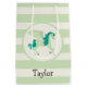 Coola, retro, färglös barn Teal & Ljust grönt Unicorn-design på vitt rand, strimlad mönster med vintage. Perfektens gåva till baby, småbarn, barn, barn, tonåringar eller vuxnor! Personlig designen genom att lägga till ett barns namn eller anpassningsbar. Besök vår butik, Födelsedagsfest House, för mer underbara anpassade, pojkprodukter och flickprodukter och rumsdekaler!