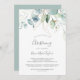 Denna ljust gröna och guldbladiga dopinbjudan är perfekt för ett modernt babydop. Den eleganta botaniska designen har ljust och luftigt akvarell-eukalyptus accentuerat med lekfulla guldglittrande blad.
