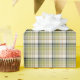 Gift-omslag med en plaidwerx-original av alla användningsområden, rustik pläderat mönster i lätt vår grönt, marin blått och grädde, med större grönt och gult guld.