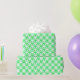 En papper förpackning byggt med ett ljust grönt och vitt kontrollerat mönster med hjärtan på stor storlek. Anpassa den vita bakgrunden färg bland flera alternativ.