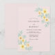 Ömtåliga blekgula blommor och mjuk grön lövverk pryder denna ljusrosa bakgrund. De akvarell blomsterbetonade dekorationerna frammanar en mild, romantisk atmosfär, perfekt för en vårfest.