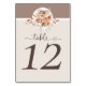 Ljust jordtonat blomster- rustikt bohemiskt bröllo bordsnummer