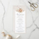 Informera gäster med denna lätta anpassningsbara programmall med ceremonischema på framsidan och officiell lista över bröllopspartiet på baksidan. Förälskas i invecklad bohemisk blomsterutsmyckning med inslag av elfenben och koppar! Mjuka neutrala toner med en jordnära gestaltning skapar en elegant och ljus palett för din bohemiska bröllopsstil. Perfekt för en rustik, modern höstfirande i lantgårds- eller ladumiljö och mer!