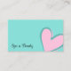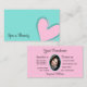 Gör ett bestående intryck med den här vackra och öga-affärskortet-designen som har ett sött rosa hjärta på lätta teal och baby rosa bakgrunder med (medarbetare-) foto. Anpassa enkelt det här affärskortet till ditt varumärke. ♡ DIN FAVORITE - Designer:-) Modern och professionell affärsvaror. ♡ jag önskar er lycka till med denna punkt. ♡ www.zazzle.com/store/your_favorite ♡ www.zazzle.com/store/favorite_markeplies ♡