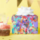 Ljusa blått, lilan, gult och det röda sminket de huvudsakliga färgerna av denna roligt görar sammandrag målning