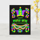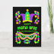 Ett vibrantly färgat Mardi Gras hälsningkort för morföräldrar, med en krona, en maskera och en stränga av pärlor i ljust - grönt, lilor och gult på en svart bakgrund. Du kan ändra det inre meddelandet, om du önskar.