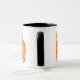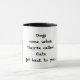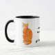 En vitringermugg med ett svart handtag och kant och en handpainted ljust rödbrun katt. Citationstecknet från Mary Bl, läser, ", kommer hundar, när de kallas, katter får baksida till dig.",