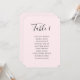 Dessa sittkort för bröllop är designade för par som värdesätter en raffinerad och genomtänkt layout för mottagningen. Placerade mot en mjuk, blek rosa bakgrund kombinerar designen delikat kalligrafi med ren typografi och skapar ett lugnt och elegant visuellt flöde. Varje kort är gjort för ett enskilt bord och placeras tillsammans med de andra för att skapa en ren och organiserad sittdisplay som är lätt för gästerna att följa. Den milda rosa tonen passar särskilt bra till vår- och sommarbröllop och kompletterar naturligt ljusa lokaler och romantiska färgpaletter. Den är lika lämplig för klassiska, moderna och minimalistiska bröllopsstilar. Finns tillgänglig både som tryckt kort och digital nedladdning.