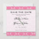 Rosa Damask Bröllop Spara Datum. Vintage Modern Tvåtons Pastellrosa med Grå Accenter Damask Bröllopsinbjudan. Perfekt för Rococo Barock Blommig Bröllop, Medeltida Renässans, Franska Viktorianska Bröllop eller Eleganta Lanthus Bröllopsteman.