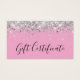 Ljust rosa intyg om gåva från silver Glitter Visitkort