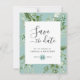 Elegantens ljussken, anka äggblått och löv med eukalyptus och ett filter av guld punkter. En contemporary stil förskönades med romantisk kalligrafi.
