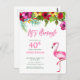 Sätt tonen för en rolig, sommarlik 40-årsfirande med denna söta tropiska "Let's Flamingle"-inbjudan i vykortformat! Med en ljus, tropisk akvarellblomma med färgrika hibiskus, flasksrenare, ljus paradisfågel och palmlövverk, följt av "Let's Flamingle" i flamingorosa. Personifierad på framsidan med text i matchande rosa och grönt. Upphovsrätt Elegant Invites, alla rättigheter förbehållna