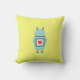 Cute-robotkudde med en tecknad som illustrerar en blå, klumpig tecknad robot som håller en platta med ett hjärta på en ljus gult bakgrund. Den här robotkudden är lämplig för för barn och kräk som kärlek robotar och söta illustrationer.