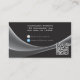 Ett slimmat och modernt affärskort för ett datorföretag eller telekommunikationsföretag. Ljusstrålar på en svart bakgrund. Kontaktinformation på baksidan, tillsammans med en QR-kod. Se till att QR-koden adress uppdateras i enlighet med detta.