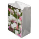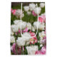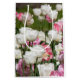 Ljust vita och rosa tulpaner på en solig dag. Fotot togs i juni 2022. Affischen är lämplig för inredning.