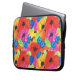 Ett söt Laptop sleeve, med en vibrerande färgad mönster av poppies och kornblommor, från en handmålad design av Judy Adamson.