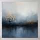 Gå in i en värld av tyst reflektion med detta minimalistiska landskapskonst. En solitär träd med känsliga vita och gyllene blommar står på ett beundransvärt sätt i en mistig och drömmande omgivning. De mjuka övertoningarna av blått och grått framkallar en känsla av lugn, medan skuggande gyllene fläckar tillför en aning magi och värme. Perfekt för meditationsutrymmen, modernt insida eller naturinspirerade samlingar, detta biet inbjudan stillhet och själviskhet. Oavsett om det trycks på arbetsytan, poster eller är en hemutrustning, förvandlar det allt utrymme till en fristad av fred.