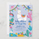 Den här söta babyduschfiesta-inbjudan har en ljusblå bakgrund med lama/alpaca, fåglar, kaktus, regnbåge, berg och blommor. Baksidan har en blå bakgrund med blommönster. Anpassa den efter dina behov. Du hittar matchande produkter i min butik.