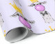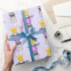 Att slå papper med ett charmigt men roligt mönster. Designad med ett vismiskt lampa som blåser en stor rosa bubbla medan tuggummi tuggas. Med guld krona och svart fluga. Ljust lila bakgrund.