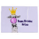 En personlig-födelsedagspressning (stor storlek) med en vit lampa som blåser en stor rosa-bubbla medan tuggummi tuggas. Med guld krona och svart fluga. Ljust lila bakgrund.