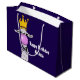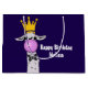En personlig-födelsedagspressning (stor storlek) med en vit lampa som blåser en stor rosa-bubbla medan tuggummi tuggas. Med guld krona och svart fluga. Mörkens lila - bakgrund.