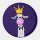 En magnet med ett vismiskt lampa som blåser en rosa bubbla medan tuggummi tuggas. Med guld krona och svart fluga. Mörkens lila - bakgrund.