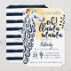 Trendig och snyggt lama och rand är könsneutrala, åk- och babyduschfiestasinbjudan till mamma. Utformningen har en vacker och viskös stor illustration av mor med texten "oh llama mamma" som visas i en handskrift för roligt, med stil-typografi. Om du spränger abstrakta mönster skapar det en roligt och ett festligt utseende. Lama-babyduschinbjudan är designad i en färg-palett med ljus gult vattenfärgsbakgrund med djup marin blå rand mönster för att skapa snyggt, trendig och modern design. Den omvända sidan har en modern, snyggt och trendig marin blå vattenfärg rand mönster och lamaillustrationen med duschdatumet, som på ett vackert sätt kompletterar den främsta teckningen. Alla illustrationer som finns i denna moderna, snyggt och trendig oh llama mamma könsneutral inbjudan till babydusch är handritade originalbilder av Moodthology. Du kan anpassa texten storlekt, färg, teckensnitt och layout för din egen personliga designinställning.