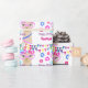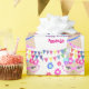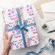 Llamadivagrattis på födelsedagen som slår in den pappra grattis på födelsedagen som slår in papper, en gullig design för divaLlamatema med färgrik text och girlander. En modellama med katt-ögat rosa exponeringsglas och färgrika blommor och girlanden, denna design kan personifieras med namn eller din egna text