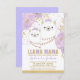 Llamamammababy shower/purpurfärgad guld- blom- inbjudningar