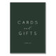 This elegant tabletop sign features a minimalist design with a sophisticated dark green background, creating an understated yet refined look. The text "CARDS and GIFTS" is presented in a mix of clean sans-serif and flowing cursive typography, adding a touch of modernity and grace. Below, the phrase "thank you" adds a heartfelt sentiment perfect for expressing gratitude at weddings or other special occasions. The overall mood is one of quiet appreciation and timeless elegance, making it ideal for enhancing any celebratory event's decor while maintaining a subtle sophistication.