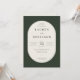 This elegant wedding invitation features a sophisticated and timeless design with an oval frame set against a dark green background. The typography is classic and refined, adding to the formal yet inviting atmosphere of the event. With its clean lines and simple color palette, this invitation exudes a sense of grace and understated luxury, perfect for couples looking to celebrate their special day in style. It’s ideal for those who appreciate traditional aesthetics while ensuring all essential details are clearly presented for guests.