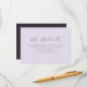 This elegant wedding enclosure card features a soft lavender background with an understated, sophisticated design. The typography is refined and cursive, adding a touch of timeless romance to the overall look. It conveys a calm and inviting mood, perfect for guiding guests through important details about their special day. Ideal for couples aiming for a classic yet modern aesthetic, this card seamlessly complements any wedding theme while maintaining a sense of personal elegance.