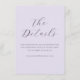 This elegant wedding enclosure card features a soft lavender background with an understated yet sophisticated design. The text is presented in a flowing, cursive script that adds a touch of romance and refinement to the overall look. The minimalist style focuses on simplicity and grace, making it perfect for couples who prefer a classic and timeless aesthetic for their special day. Ideal for sharing important details about accommodations and additional information, this card complements any traditional or modern wedding theme while maintaining a cohesive and polished appearance.