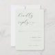 This elegant wedding RSVP card features a minimalist and sophisticated design with an understated color palette of soft, muted tones. The typography is refined and cursive, adding a touch of timeless charm to the overall look. Perfect for couples seeking a classic yet modern aesthetic, this card exudes a serene and graceful mood, ideal for capturing the joyous anticipation of your special day. With customizable text areas, it allows you to personalize details while maintaining its clean and polished appearance.