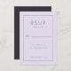 This elegant wedding RSVP card features a minimalist and sophisticated design, perfect for couples who appreciate modern simplicity. The dark background contrasts beautifully with the clean white typography, creating an understated yet refined look. With its simple lines and graceful script accents, this card exudes a sense of timeless elegance and formality, making it ideal for a chic and stylish celebration. It offers customizable text areas to personalize your message while maintaining its sleek aesthetic, ensuring that every detail reflects your special day's sophistication.