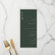 This elegant wedding menu design exudes sophistication with its dark, rich color palette and minimalist layout. The clean typography adds a touch of modernity, while the structured sections for starters, salad, main course, and dessert guide guests through an exquisite dining experience. Perfect for a formal celebration, this menu captures a refined and timeless mood, ensuring your special day is as memorable as the culinary journey it offers.