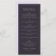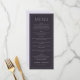 This elegant wedding menu design exudes sophistication with its sleek, monochromatic color palette and clean typography. The layout is meticulously organized, highlighting each course in a refined manner that complements the formal occasion. The mood is one of timeless elegance and understated luxury, perfect for a memorable celebration. Ideal for couples seeking an air of classic charm, this design allows for personalization while maintaining its polished aesthetic, ensuring it stands out on your special day.