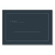 This elegant wedding place card design exudes a modern and minimalist aesthetic, perfect for a sophisticated celebration. The clean lines and simple typography create a timeless look that complements any decor style. With its dark navy background and subtle white text, it conveys an understated elegance and refinement. Ideal for couples who prefer a chic and contemporary vibe, this design allows for easy customization to fit your special day's theme.