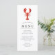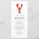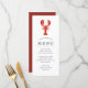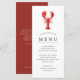 Personliga matsedlar med kräfttema i röd färg för din nästa kräftbakfest eller seafood-fest. Den har en akvarellillustration av en hummer. Under denna finns utrymmen för din evenemangsinformation.