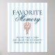 This elegant, downloadable favorite memory sign features a vintage inspired, red drawn illustration of a lobster on a soft blue striped background.