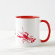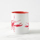 Kaffe mugg visas i det klassiska vita tvåtonsfärgade stil med ett sött rött hummer tryckt. Anpassa det här objektet eller köp som det visas