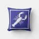 En vit havslobster på en marin blå kudde för ett sommar- eller strandhus eller ställe med ett nautiskt tema