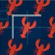 Cute lobster mönster med rödskaldjur på en roligt marin blå kustväv för en ö eller strand älskare.