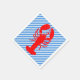 Pappra party blöjor med en röd hummer mot blå och vita remsor.