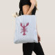 Enjoy our nautical red lobster painting blue stripe tote bag.